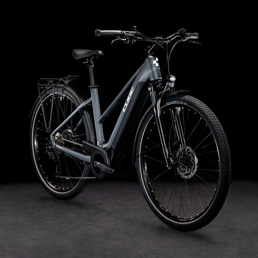 Bei der Entwicklung des Touring Hybrid standen Vielseitigkeit, einfaches Handling und hoher Fahrkomfort im Fokus. Somit habt Cube den leistungsstarken Bosch Performance Motor mit Bosch Smart System und den PowerTube Akku so formschön ins Rahmendesign integriert, dass es kaum auffällt. Was aber auffällt, ist der tolle Support im Vorwärts. Die überarbeitete Efficient Comfort Geometry sorgt gemeinsam mit der Federgabel mit 63 mm Federweg für ein komfortables und zugleich kontrolliertes Fahrgefühl, selbst auf holprigen Strecken. Auf dem Gepäckträger findet sämtliches Hab und Gut bequem Platz. Und in der Sattelklemme hat Cube ein praktisches Mini-Tool versteckt. Was noch? Ein neuer ACID Kettenschutz, ein Seitenständer und extralange Schutzbleche. Gut zu wissen: Den Rahmen gibt es als klassischen Herrenrahmen, Trapezrahmen oder Tiefeinsteiger – da ist für jeden die passende Version und Größe mit dabei!