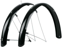 Einen zuverlässigen Schutz vor Dreck und Spritzwasser in Kombination mit eleganter Optik bietet das BLUEMELS SHINY Schutzblech-Set von SKS. Dank der Kombination aus Aluminiumstreifen in einer Kunststoff-Ummantelung sind diese Radschützer robust, biegesteif und vor Korrosion geschützt.