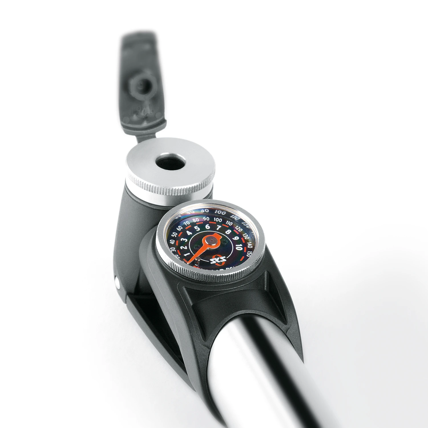 Die leistungsstarke SKS Injex Control Minipumpe ist die neuste Luftpumpe aus der Injex Produktfamilie. Sie ist mit einem Maß von gerade einmal 283 mm bei einem Gewicht von nur 216 g geradezu prädestiniert mit auf Reisen genommen zu werden. Ein kleines Rundmanometer gibt stets Auskunft über den aktuellen Reifendruck und dank ergonomischen 2-Komponeneten Griffen geht das Pumpen äußerst mühelos von statten. Mit der integrierten Teleskopfunktion und der zuschaltbaren Hochdruckstufe, ist das Aufpumpen auf allen gängigen Ventilarten bis zu 10 bar problemlos möglich. Dank des 2 Punkt-Pumpenhalters kann die Injex Control unter oder anstelle eines Flaschenhalters befestigt werden.