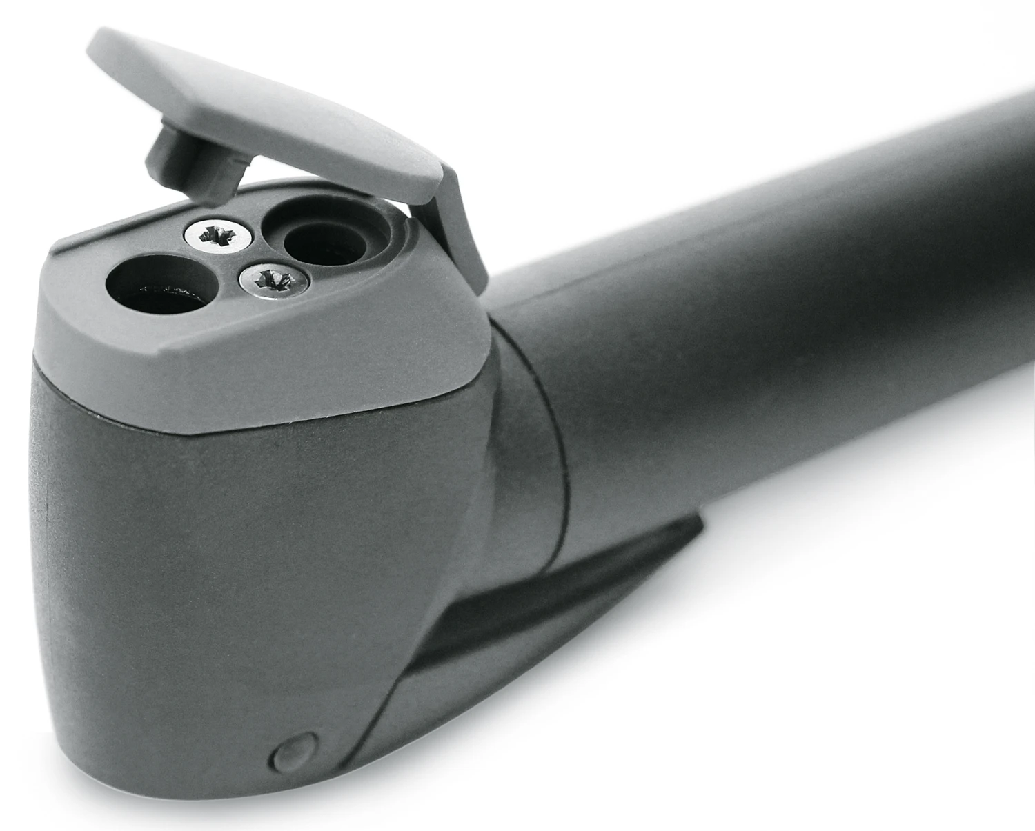 Trotz ihrer gerade mal 256mm Breite und 175g Gewicht ist sie in der Lage, bis zu 10 bar Luftdruck zu erzeugen. Sie ist mit jedem Fahrradventil kompatibel und wird mit einem 2 Punkt-Pumpenhalter ausgeliefert, mit dem man sie gut aufgeräumt am Rahmen befestigen kann.